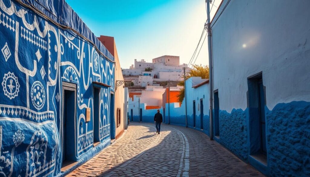 Exploring Chefchaouen’s blue streets is unforgettable. The city’s architecture and vibrant blue walls make it perfect for photographers. There are many photo spots, hidden alleys, and secret corners to discover.